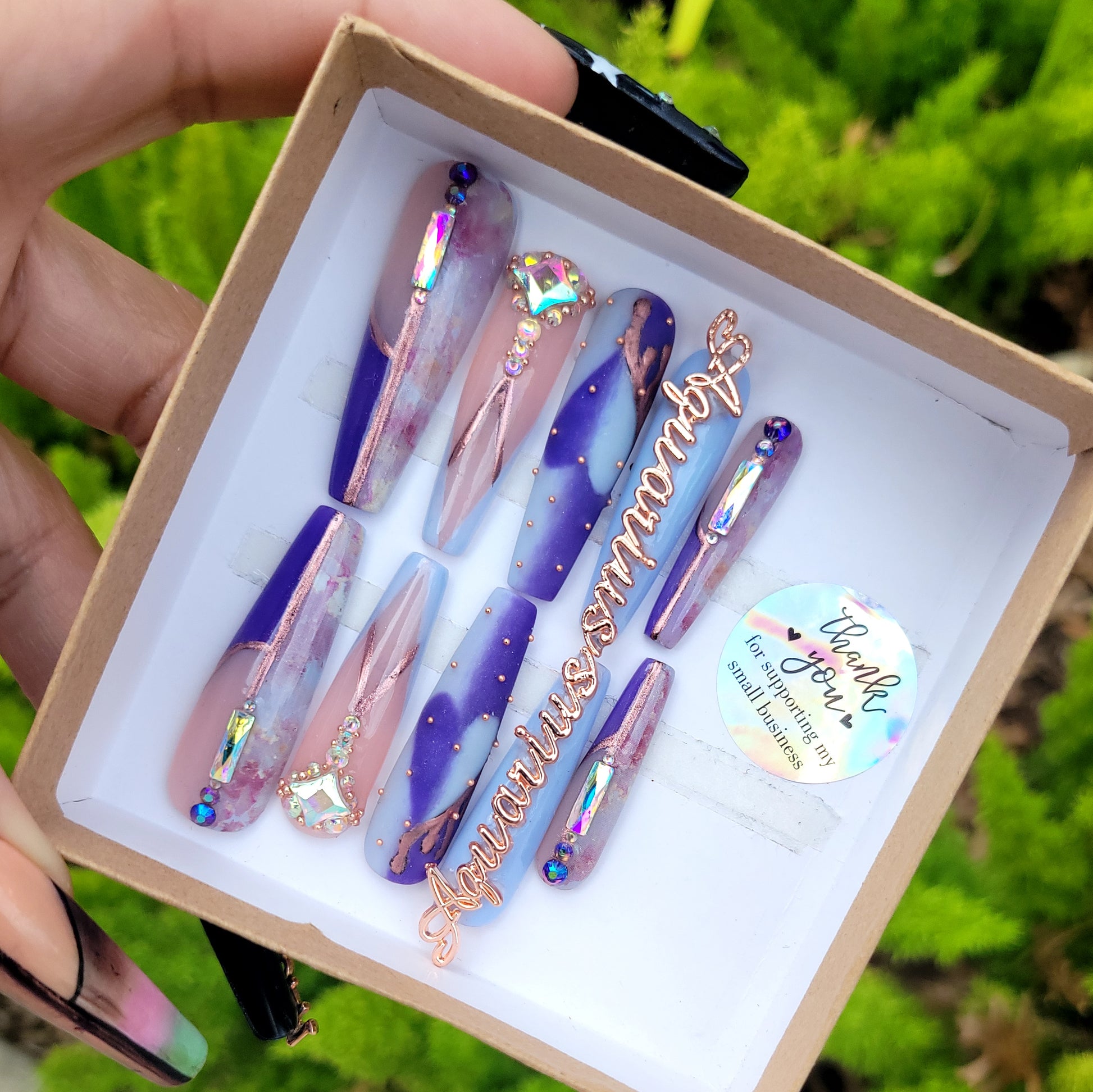 Light blue, purple, and white are listed as the lucky colors for Aquarius in 2023. We hope these nails help to bring you success this year in all aspects of your life. Of course these are perfect for any gift giving opportunity, i.e. Valentine's Day, Galentine's Day, Bridal gift, and so forth.
